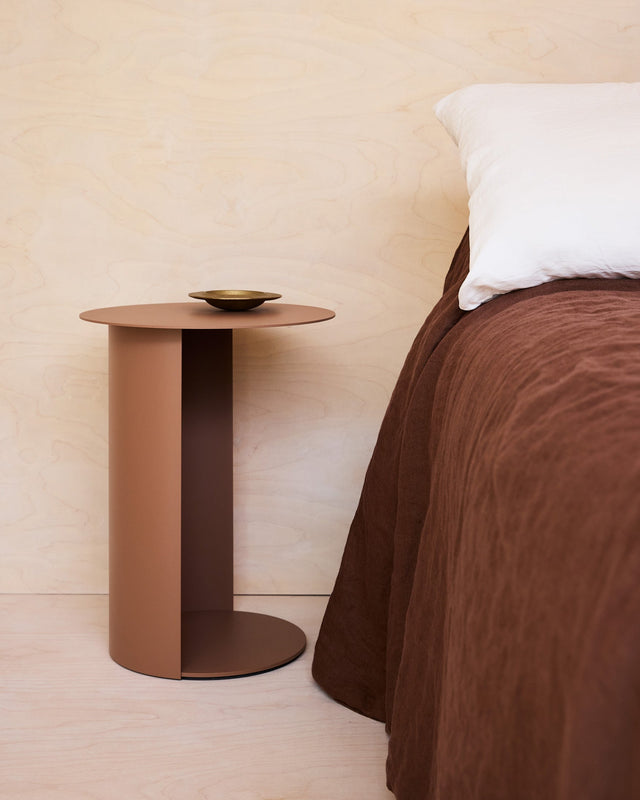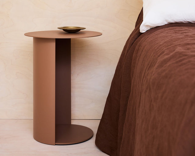 Compact, simple and sturdy, Pillar Round Side Table features a curved column that provides support whilst keeping it light. Pillar Round can be pulled up next to a sofa or used as matching bedside tables.